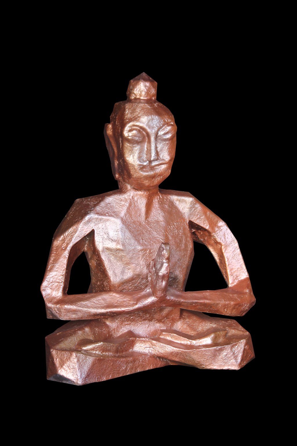 Bouddha; 2019 ; Carton gris 2,5mm, résine polyester, mat de verre, peinture aérosole métallique cuivre, or et champagne Montana ; Vernis aérosol mat ; Anould ; France.