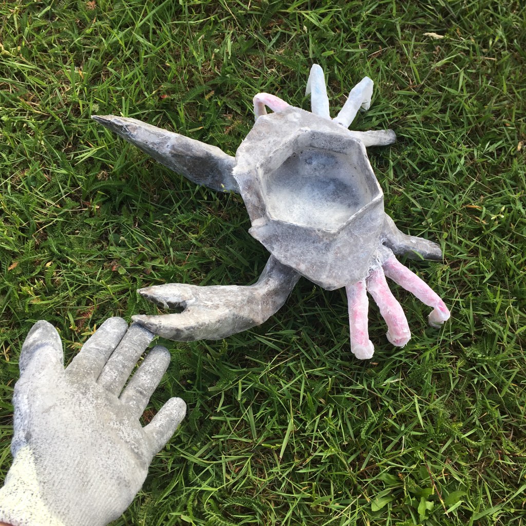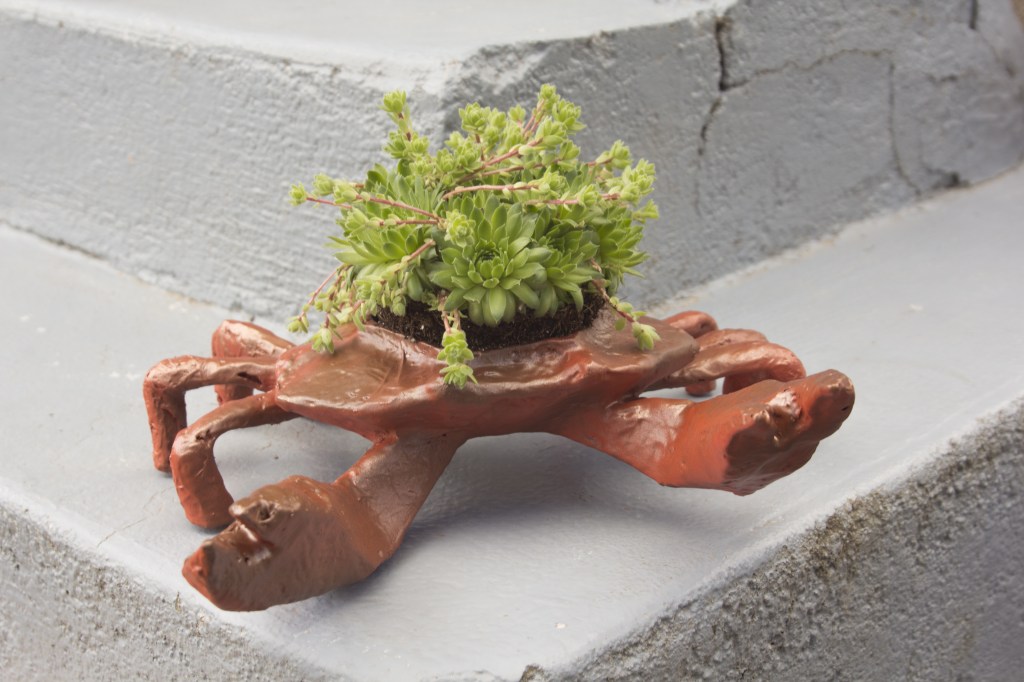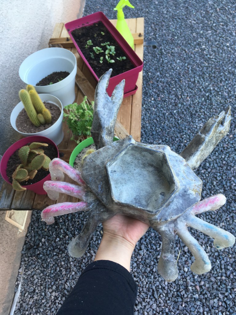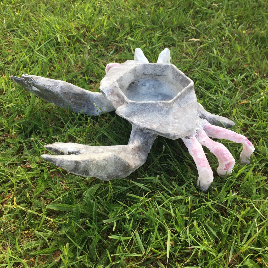 Le Crabe ; 2020 ; Carton gris 2,5mm, résine polyester, mat de verre, peinture aérosole métallique cuivre/ chocolat/ orange/ rouge sanguin Montana ; Vernis aérosol mat ; Anould ; France.