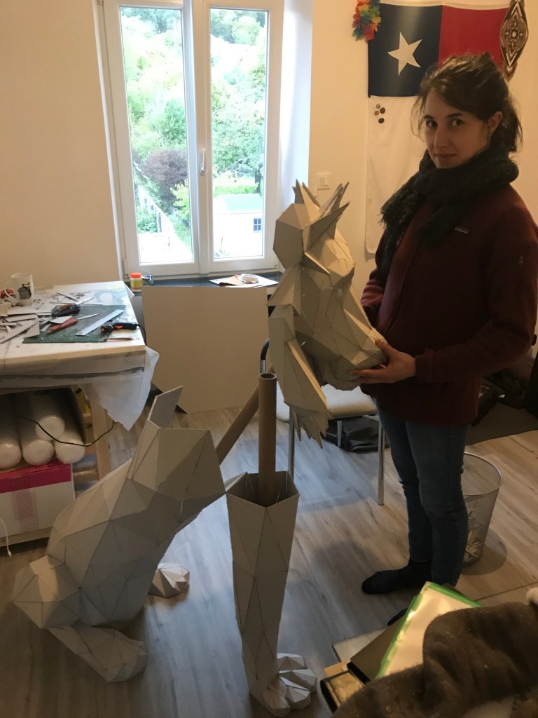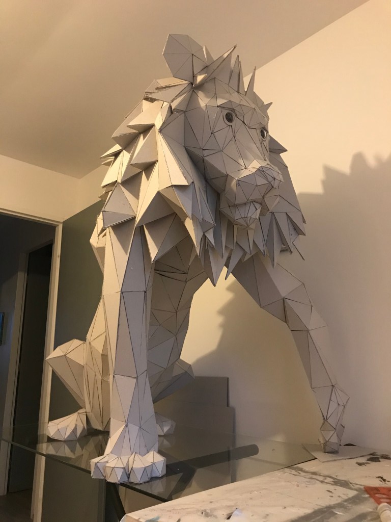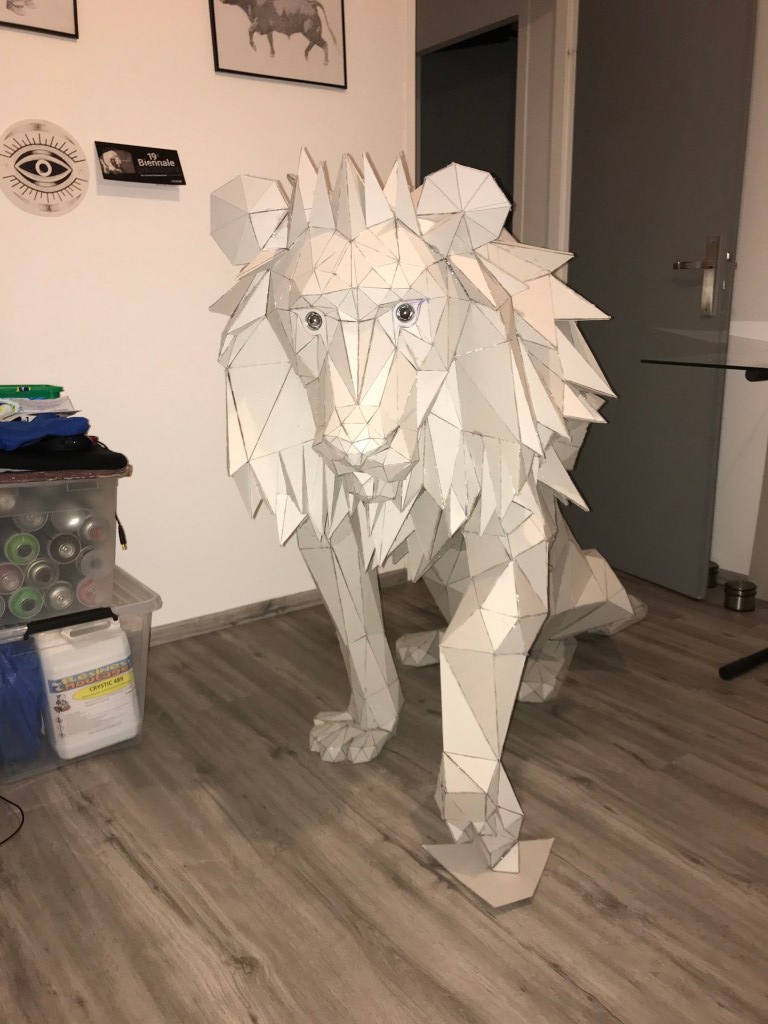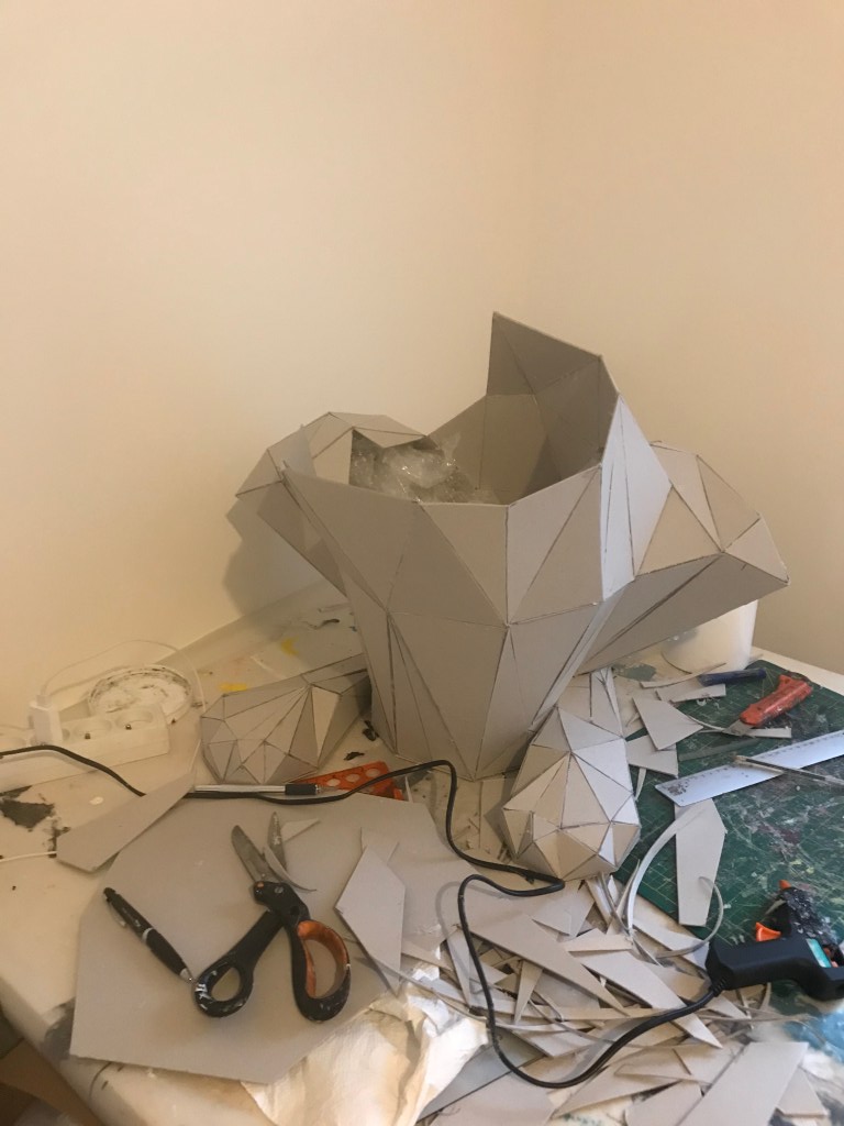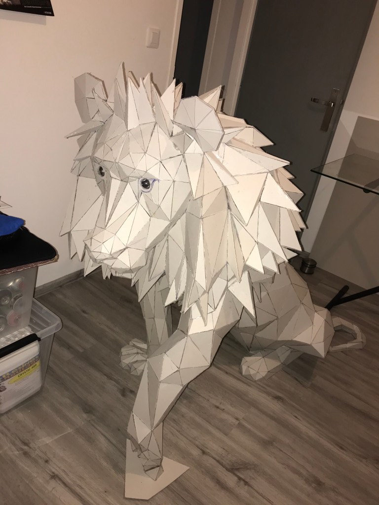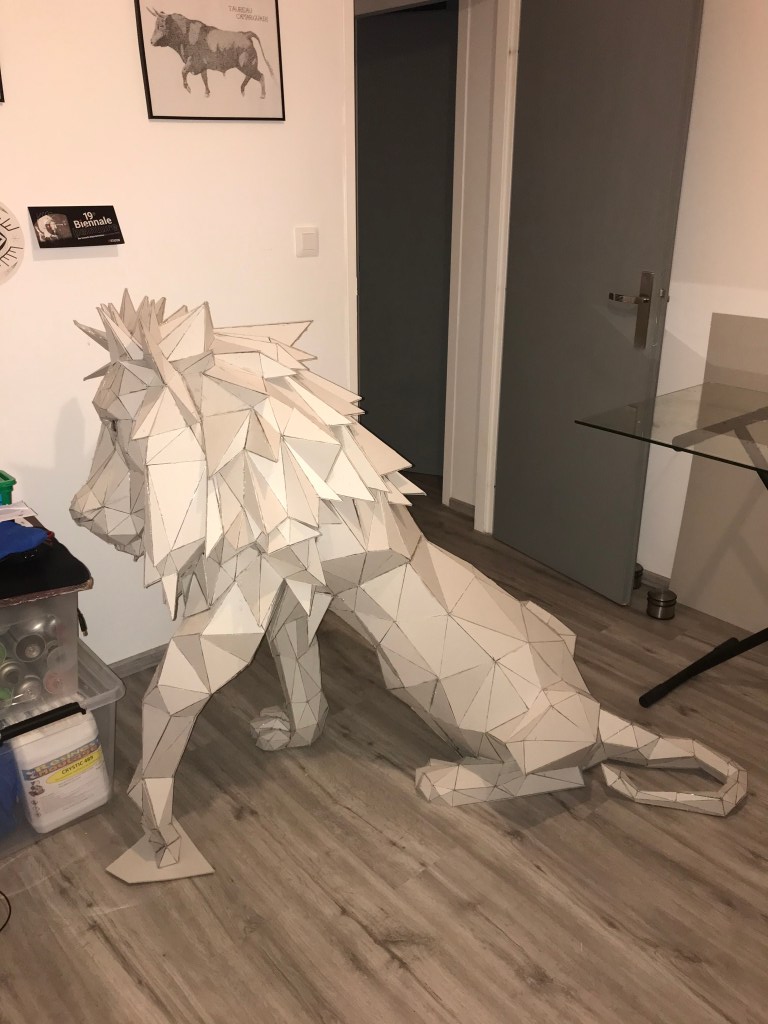 Ci dessous ,vous pourrez retrouver les différentes étapes au niveau de l’assemblage des formes géométriques en carton gris 2mm. Je travail sans outil informatique à l’avance, mon travail évolue sans contrainte mais plutôt par instinct.