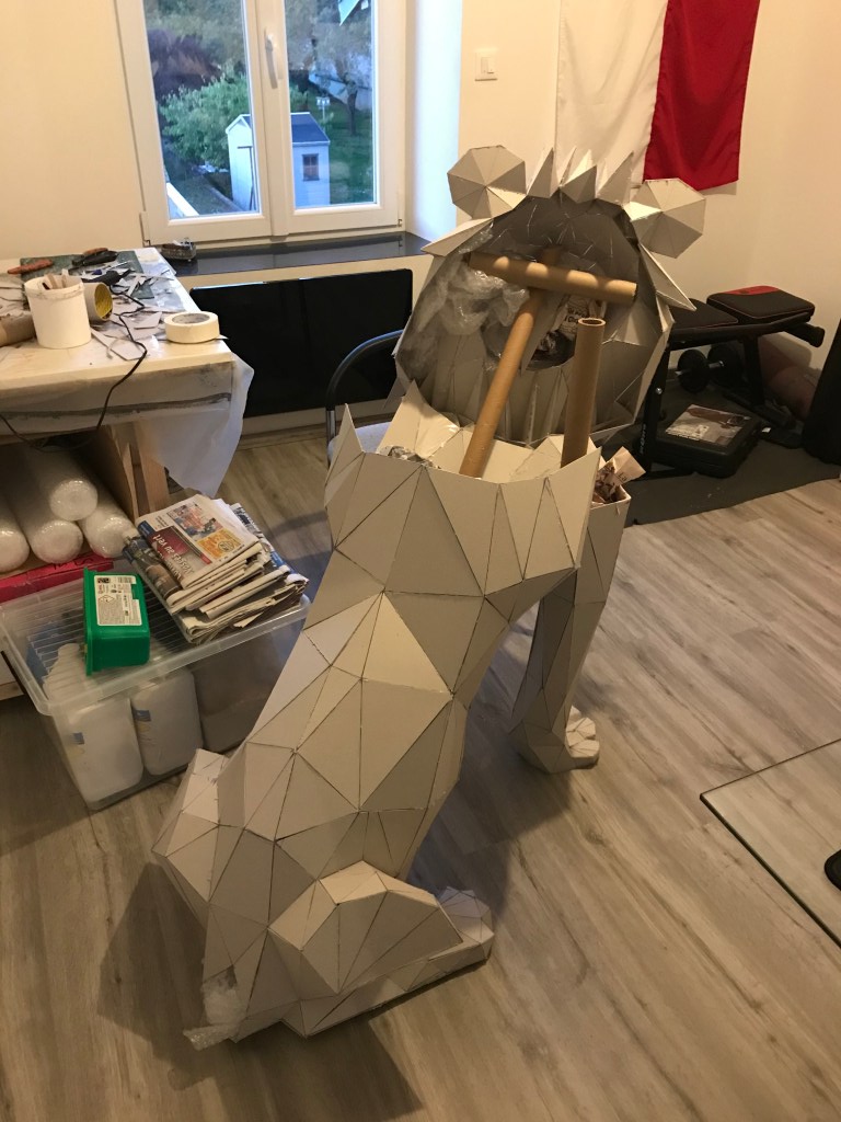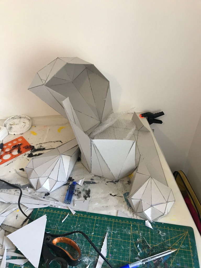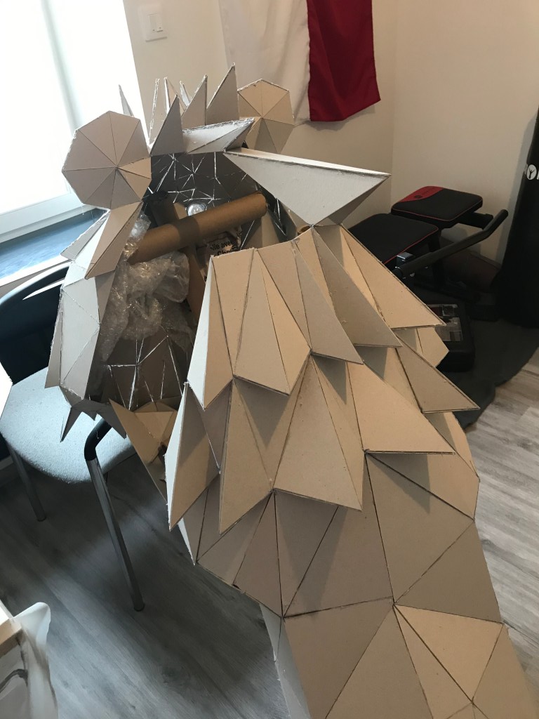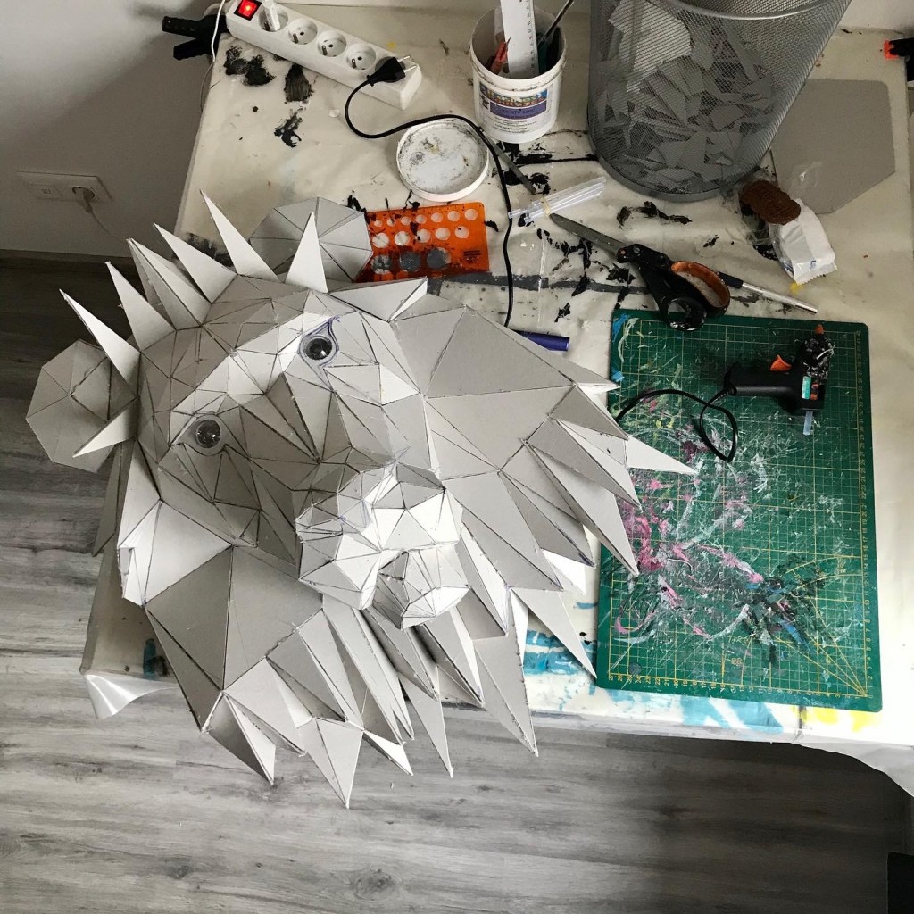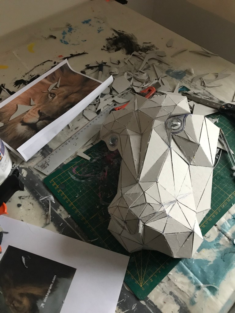 Ci dessous ,vous pourrez retrouver les différentes étapes au niveau de l’assemblage des formes géométriques en carton gris 2mm. Je travail sans outil informatique à l’avance, mon travail évolue sans contrainte mais plutôt par instinct.