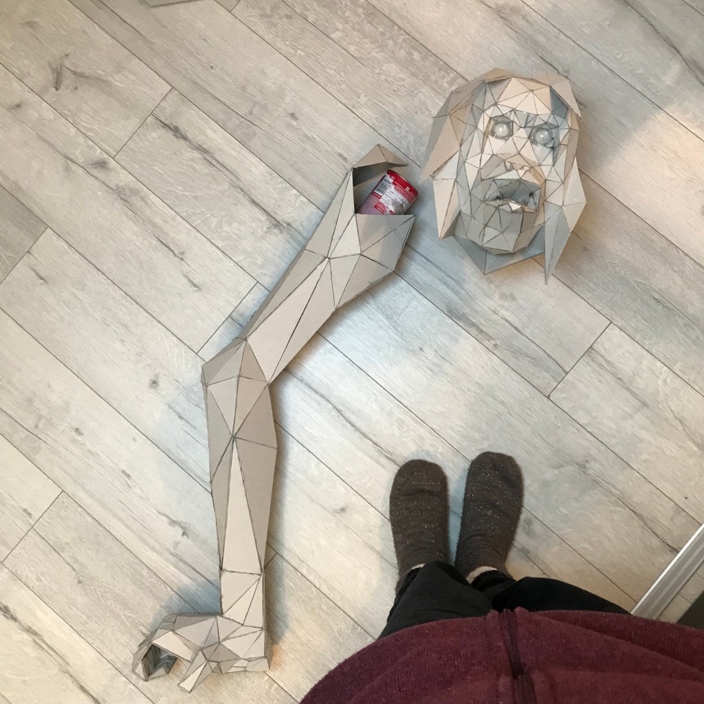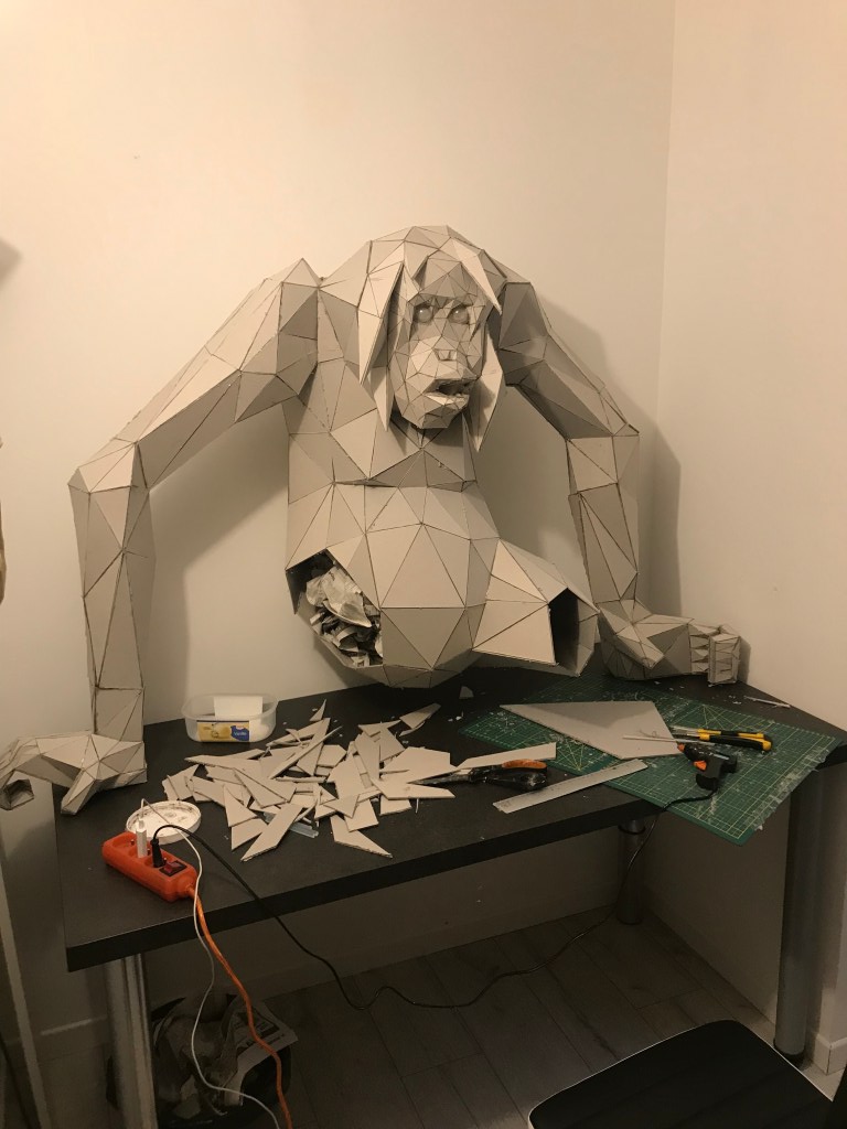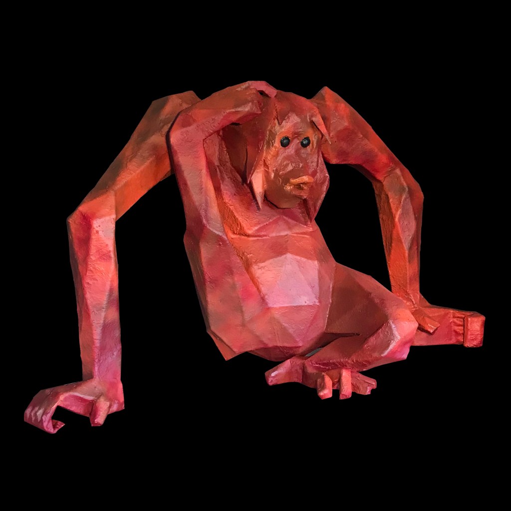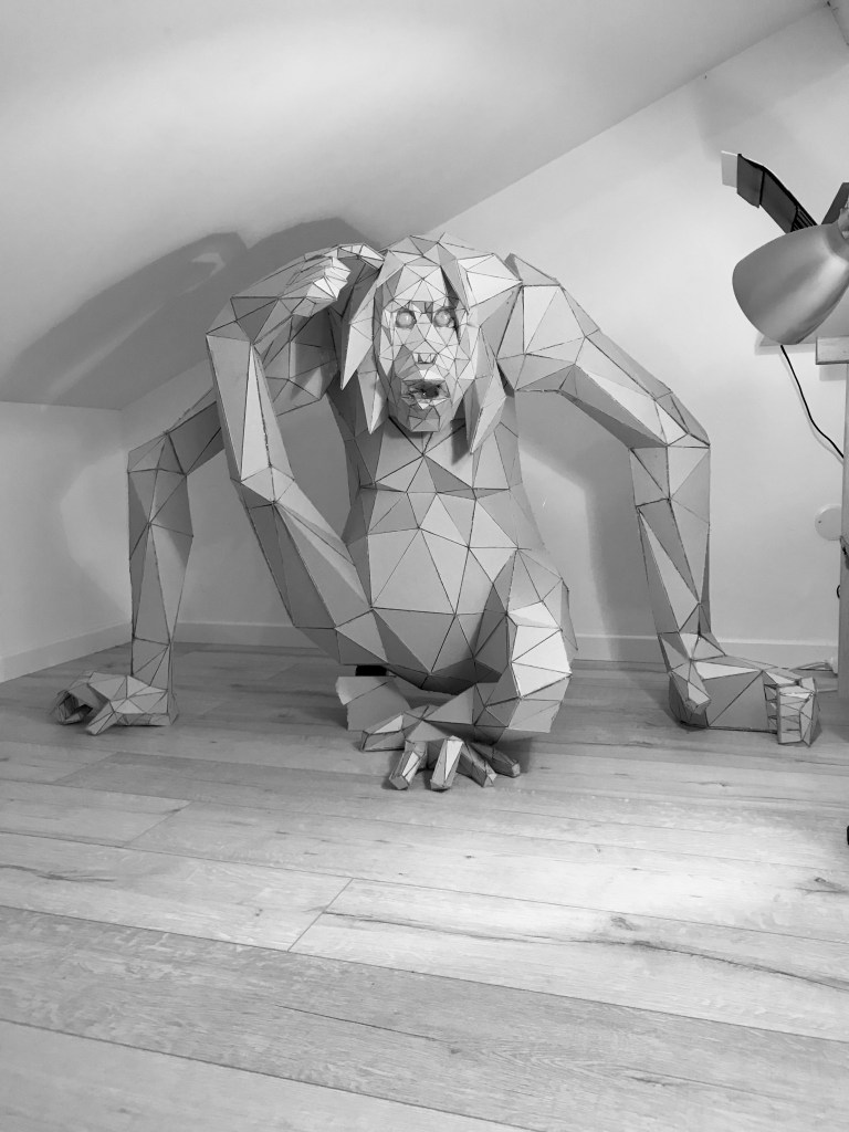Mon travail ici était porté sur l’intention de dénoncer notre monde avec un Orang-outan pas très commode, à taille réelle qui souhaite nous interroger. Nous interroger sur notre folie et notre intention d’être sur le point d’anéantir notre écosystème.