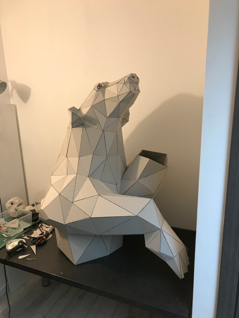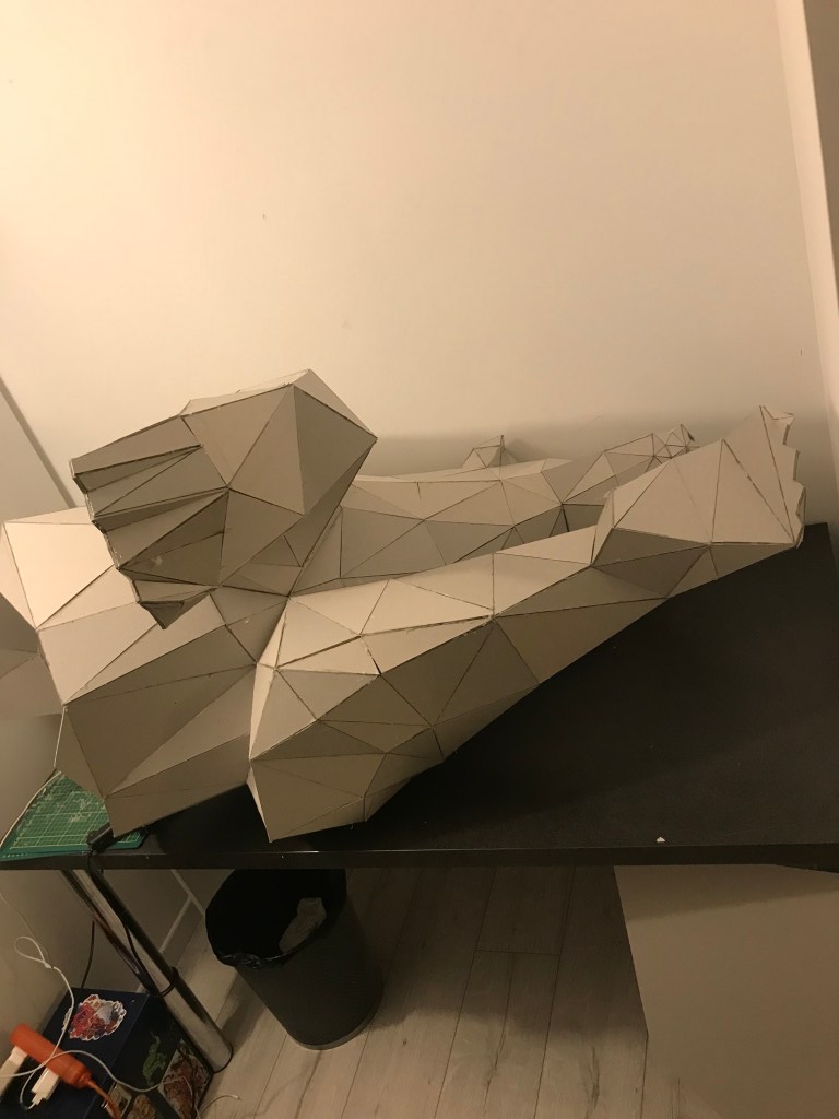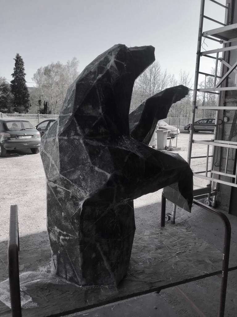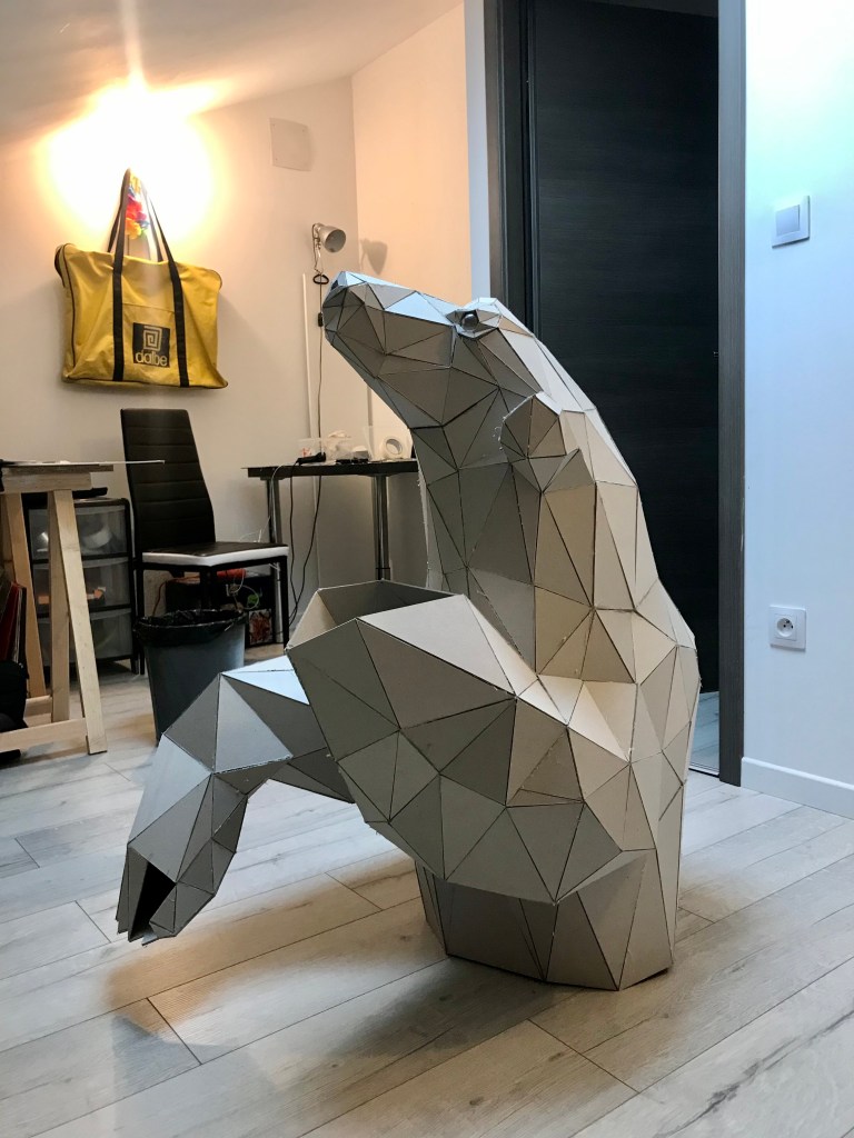 La phase carton est terminée, il ne nous reste plus qu’à attendre la fin de l’hiver pour commencer la phase résine. La résine, étant un matériau très toxique je ne peux pas l’utiliser dans un lieu fermé, de plus elle a besoin de 20°C pour pouvoir se polymériser et durcir ce qui rend les choses un peu compliquer durant ces mois d’hiver.