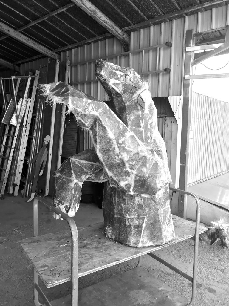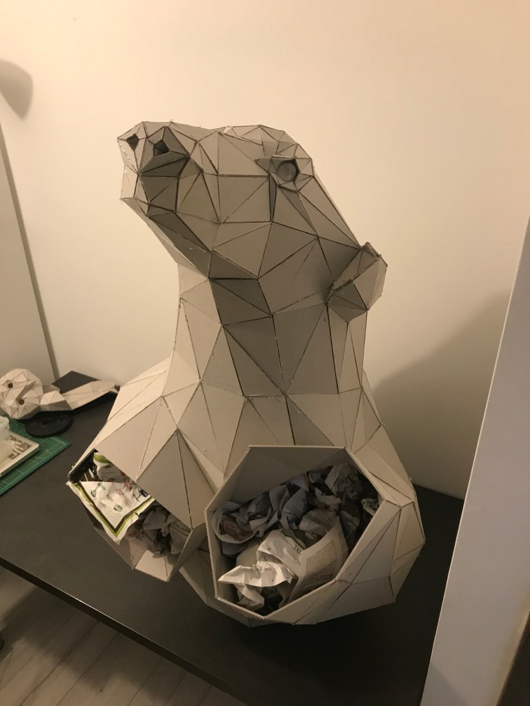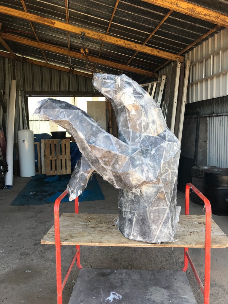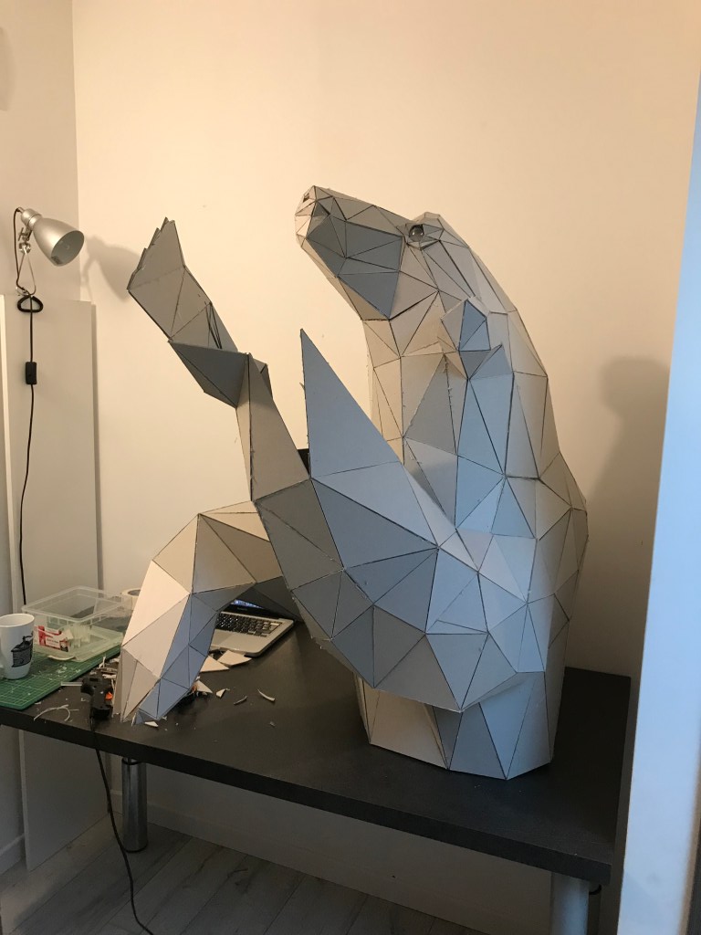La phase carton est terminée, il ne nous reste plus qu’à attendre la fin de l’hiver pour commencer la phase résine. La résine, étant un matériau très toxique je ne peux pas l’utiliser dans un lieu fermé, de plus elle a besoin de 20°C pour pouvoir se polymériser et durcir ce qui rend les choses un peu compliquer durant ces mois d’hiver.